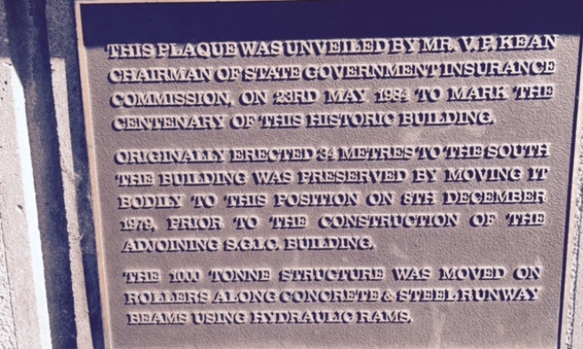 Centenary Plaque SA Harbour Board building Victoria Square Adelaide Market Quarter - How a 1000 tonne structure is moved 34 metres on Victoria Square. -