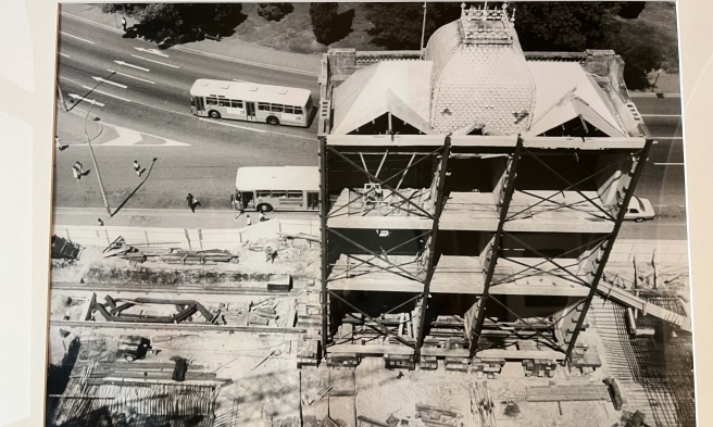 Could it be that a 1000 tonne structure had moved metres along Victoria Square? Local trader Peter Veld from Kwik Kopy installed a large photo of the original buildings along Victoria Square from Grote to Franklin Streets on his shop window on the corner of Franklin Street and discovered something very interesting.