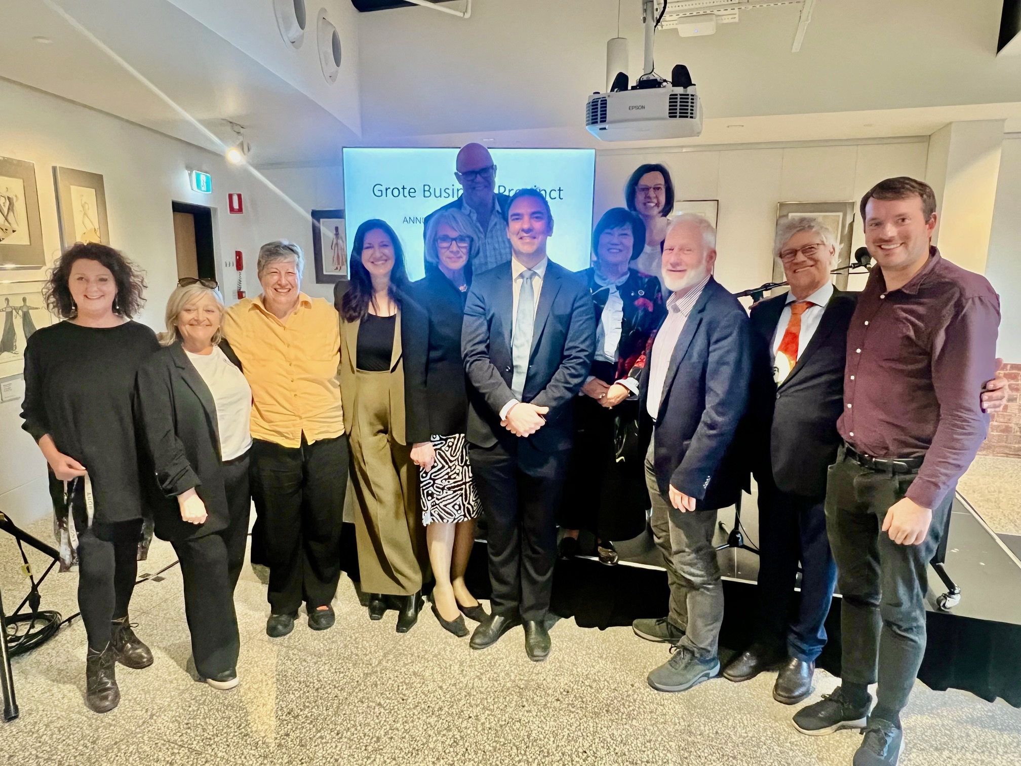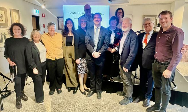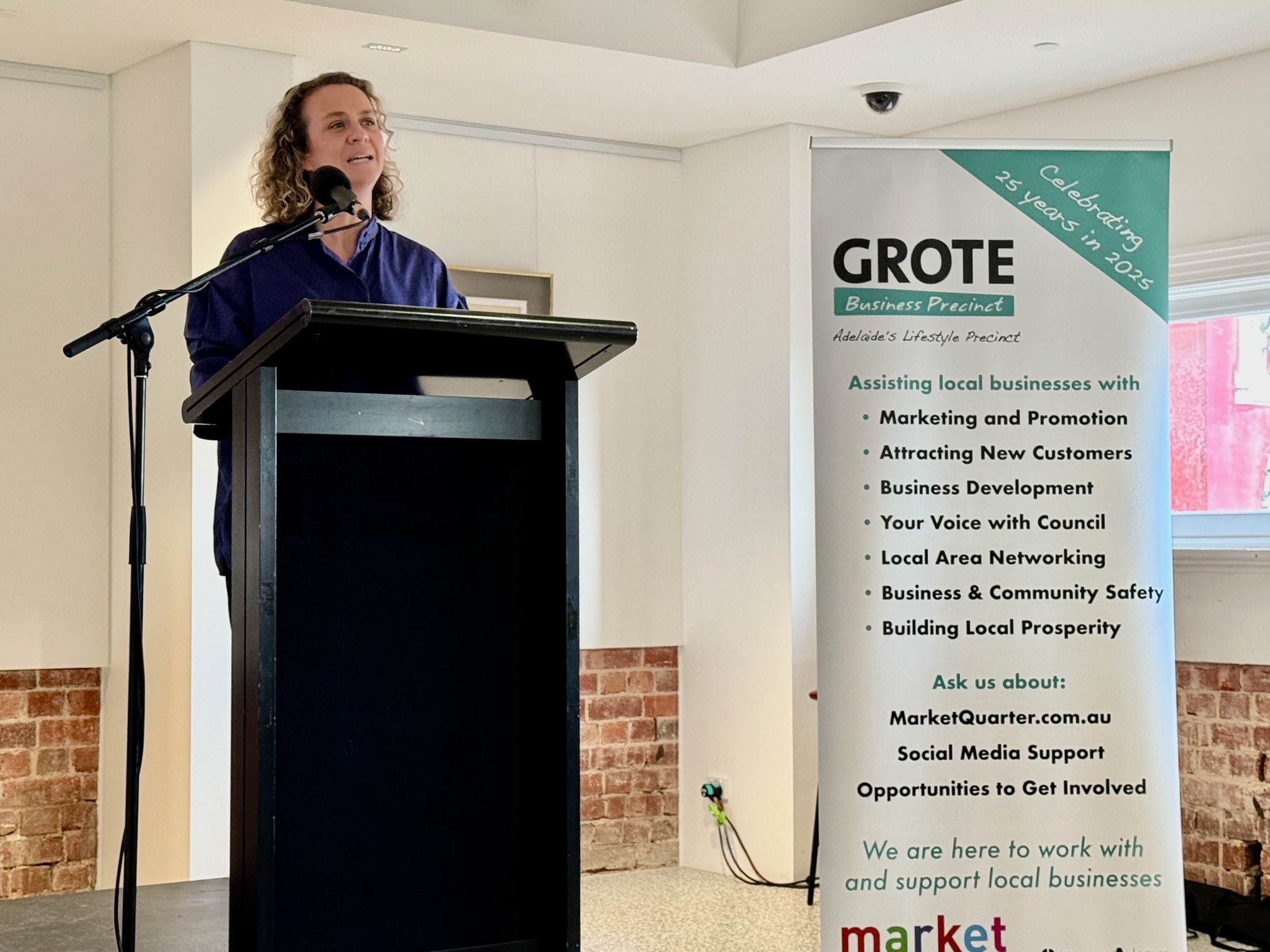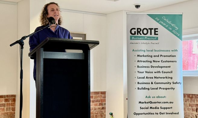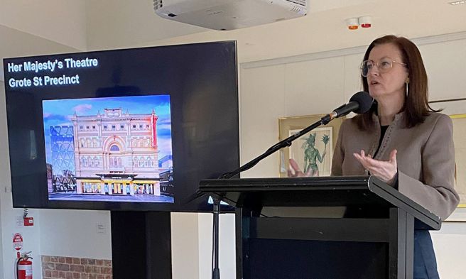 Guest speakers Kate Gould, CEO Adelaide Festival Centre and Fabienne Reilly GM Adelaide Central Market Authority attracted a good attendance at Grote Business Precinct Annual General Meeting held at Her Majesty's Theatre on Grote Street.